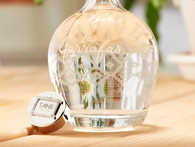 Las Garrafas y Tane se unieron para crear una edición especial que destaca por su elegancia, atemporalidad y estilo único. Este extraordinario baúl de color naranja tiene como protagonista el mezcal Máscara de Xaguar de Las Garrafas que se acompaña de hermosos objetos para su degustación fabricados con plata y obsidiana de la mejor calidad diseñados por Tane.